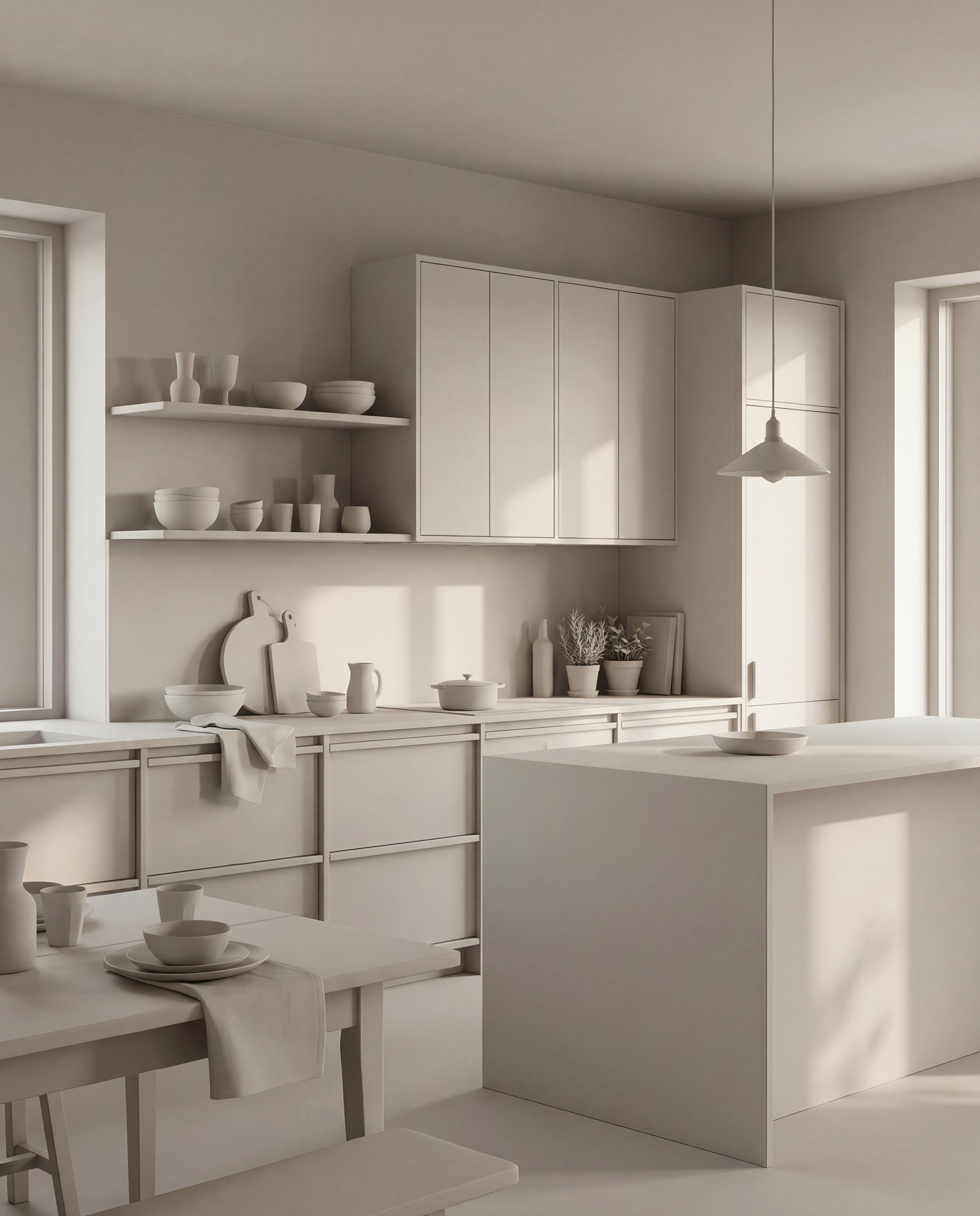 This project approaches the kitchen as an architectural space defined by proportion, light, and spatial hierarchy rather than function alone.